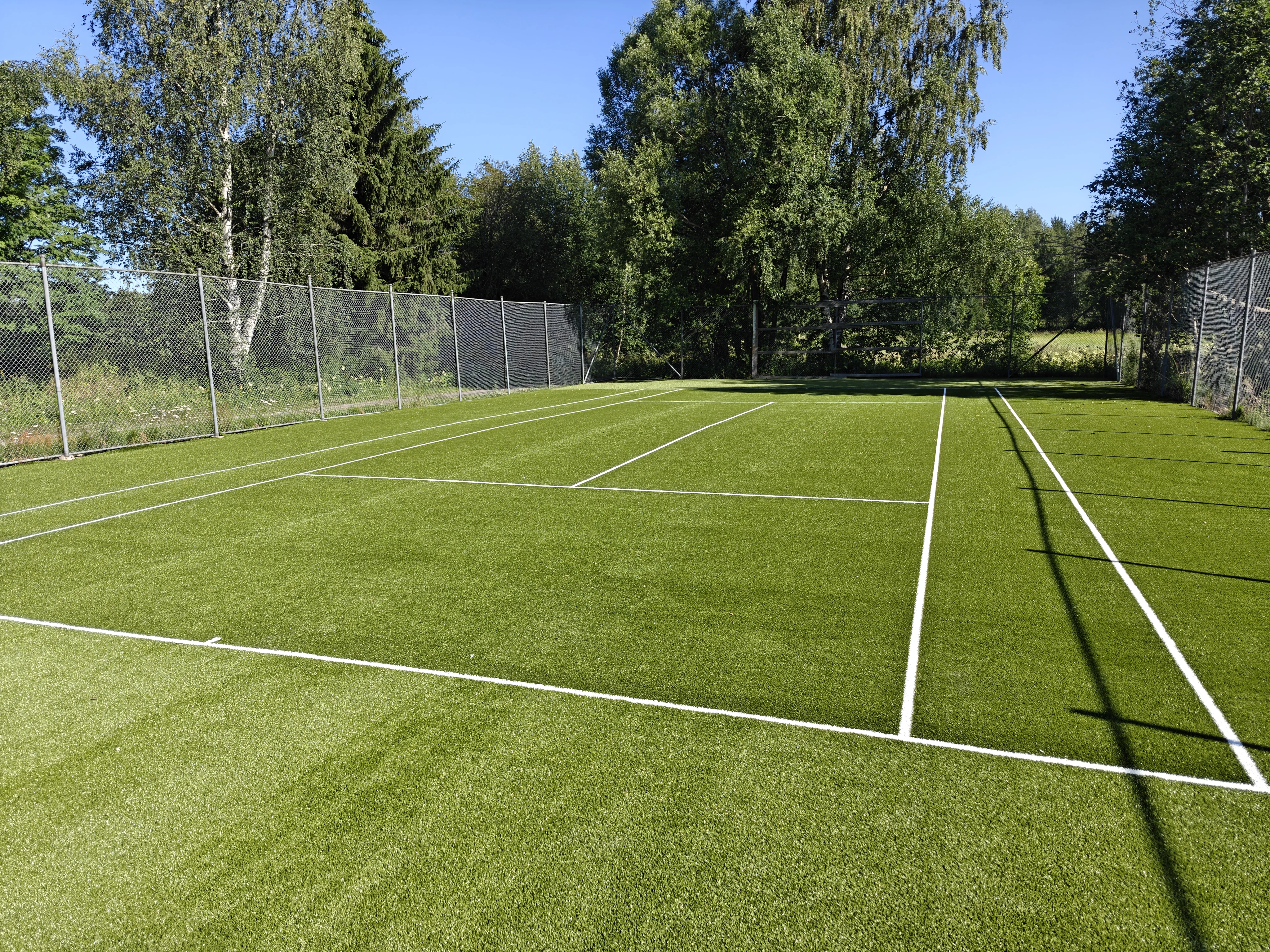 Rakenne läpäisee veden tehokkaasti, joten kenttä kuivuu sateen jälkeen nopeasti. UV-suojattu materiaali ei haalistu auringonpaisteessa.